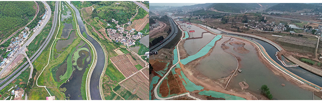 4.楚雄市龍川江西觀橋斷面水體達標工程,通過實施污染底泥疏浚、橡膠壩、生態(tài)河堤建設、生態(tài)濕地恢復等一系列水環(huán)境治理及水生態(tài)修復工程,龍川江西觀橋國控斷面已于2019年從重點整治的劣Ⅴ類國控斷面之一脫劣,提前一年達到水環(huán)境功區(qū)劃IV標準。