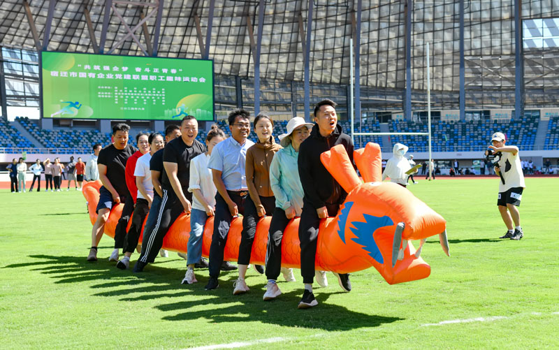 6月1日,宿遷市國有企業(yè)黨建聯(lián)盟“共筑強企夢 奮斗正青春”職工趣味運動會在宿遷奧體中心體育場成功舉辦。來自全市央企、省企和市縣(區(qū))屬企業(yè)在內(nèi)的26支代表隊約800名運動員參加比賽。