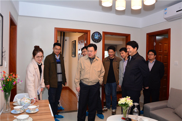 4月6日下午,宿遷市副市長、園區(qū)黨工委書記、管委會主任方文浜一行蒞臨“夢家園?融園”售樓處、樣板房參觀指導,園區(qū)黨工委委員、管委會副主任戈亮,園區(qū)勞動保障與社會事業(yè)局副局長胡明波,開發(fā)公司副總裁陳曉東、劉建華等陪同參觀。