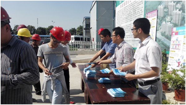 工作人員向參加交底活動的工人發(fā)放安全生產宣傳手冊,并向工人展示了精心制作的安全生產掛圖。夢家園施工人員踴躍參加,活動現場反應熱烈,本次活動起到良好的宣傳教育作用。