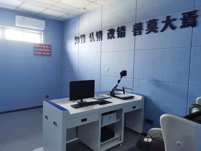 升級改造過程中,開發(fā)公司嚴格按照部、省、市等相關(guān)部門關(guān)于執(zhí)法辦案場所建設(shè)、升級改造及管理使用的要求,規(guī)范升級改造了訊問室、詢問室、辦案區(qū)、接待區(qū),辦案區(qū)設(shè)有訊問室、詢問室、等候室、信息采集室等候室、檢查室、信息采集室、涉案財物管理室以及衛(wèi)生間。各功能室內(nèi)全部安裝隔音防撞防火軟包及監(jiān)控設(shè)備、同步錄音錄像器材,全面消除安全隱患。并在辦案區(qū)及各功能室配有相應(yīng)的門牌標識、工作流程和安全管理制度等。