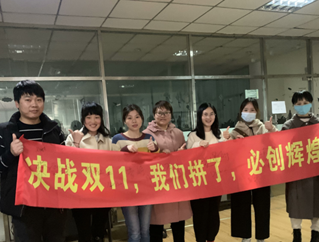 11月5日下午,我們來到騰輝家具的辦公室,首先映入眼簾的是一條亮麗的條幅:“決戰(zhàn)雙11,我們拼了,必創(chuàng)輝煌!”據(jù)了解,騰輝家具從十月份就開始備戰(zhàn)“雙十一”了,從運(yùn)營的活動(dòng)報(bào)名,到工廠的積極備貨,再到客服的服務(wù)態(tài)度。除了騰輝家具,園區(qū)電商企業(yè)四通科技、左氏木業(yè)等電商企業(yè)也都紛紛進(jìn)行了動(dòng)員。