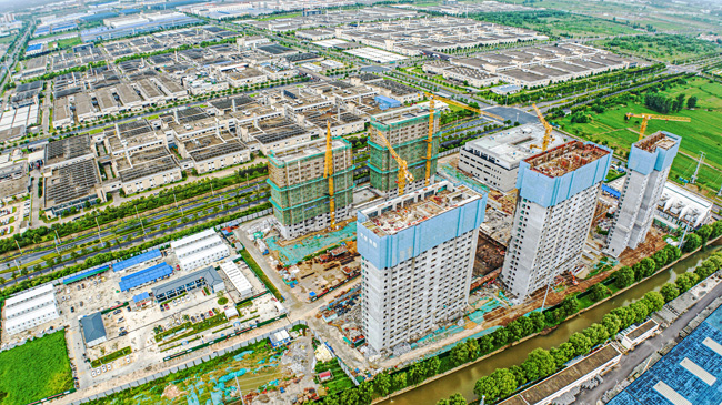 7月26日,蘇宿工業(yè)園區(qū)青年公寓項(xiàng)目施工現(xiàn)場(chǎng),工人正在加緊施工。