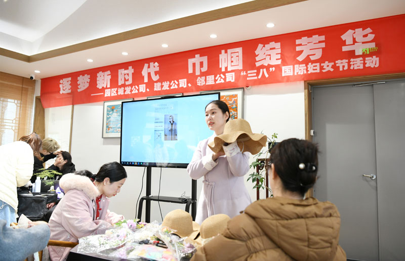 在手工制作環(huán)節(jié),女職工們化身“匠心設(shè)計師”,運用絲帶、花草等材料精心制作專屬禮帽。現(xiàn)場學會運用各自的創(chuàng)意巧思,呈現(xiàn)出風格各異的作品。