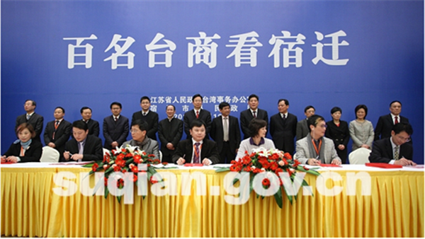 在宿遷投資環(huán)境推介會上還隆重舉行了項目簽約儀式。經(jīng)過前期深入溝通和洽談,此次“百名臺商看宿遷”活動取得了一批可喜的項目合作成果,宿豫區(qū)、宿城區(qū)、宿遷經(jīng)濟開發(fā)區(qū)和市有關(guān)部門與臺灣島內(nèi)企業(yè)共達(dá)成13個項目投資意向,協(xié)議總投資達(dá)114.4億元,涉及新能源、新材料、軟件服務(wù)外包、機械制造、環(huán)保科技、電子、食品等多個領(lǐng)域。