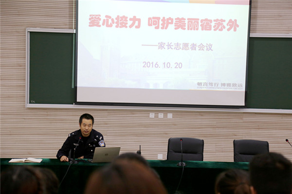 校園安全是學(xué)校發(fā)展的首要工作,更是創(chuàng)建文明校園的重要保障。近日,宿遷市蘇州外國語學(xué)校召開了家長志愿者會(huì)議,宿遷市交警支隊(duì)干警和五十名愛心家長以及學(xué)校相關(guān)行政人員參加了本次活動(dòng),大家齊聚一堂,共同討論并確定了本學(xué)期的家長志愿者工作安排。