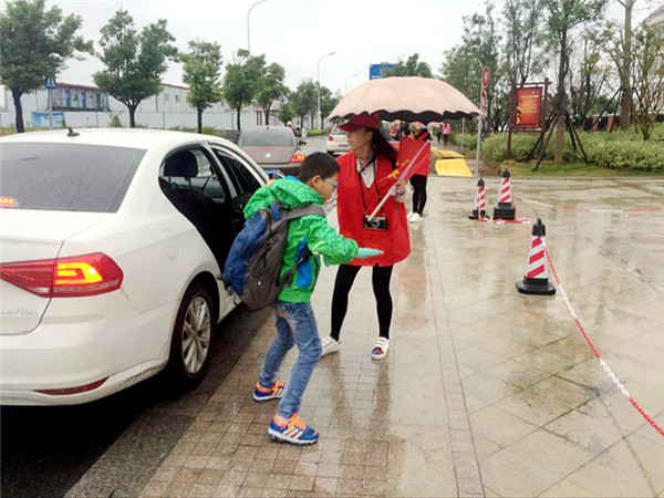 10月21日上午,第一組家長志愿者首次上崗,他們?cè)谟曛兄笓]車輛、疏導(dǎo)交通,用實(shí)際行動(dòng)為孩子們撐起了一把“愛心保護(hù)傘”。